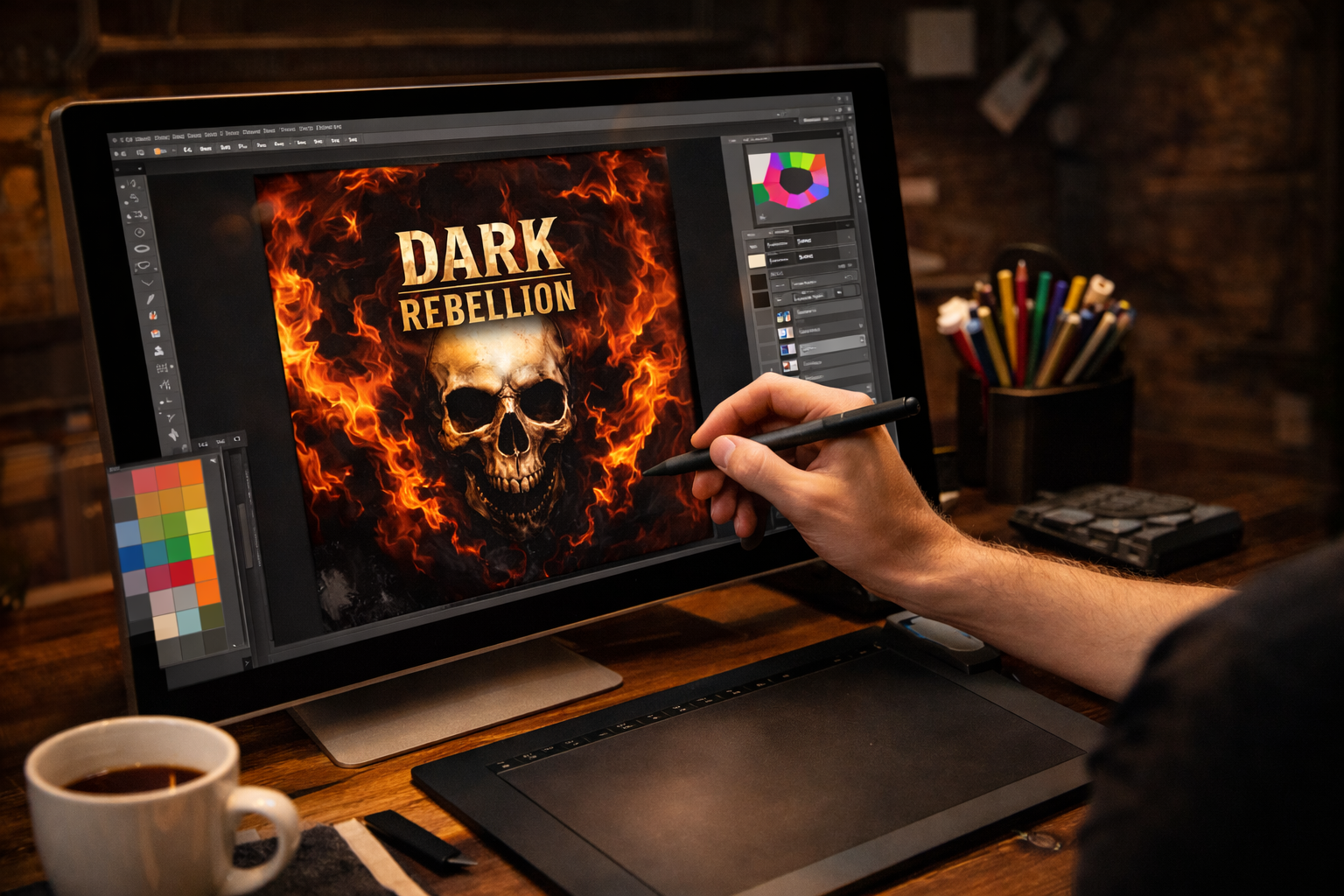 Wir erstellen dir die Grafiken z.B. für deine Tonträger, Internetauftritte oder Logos.