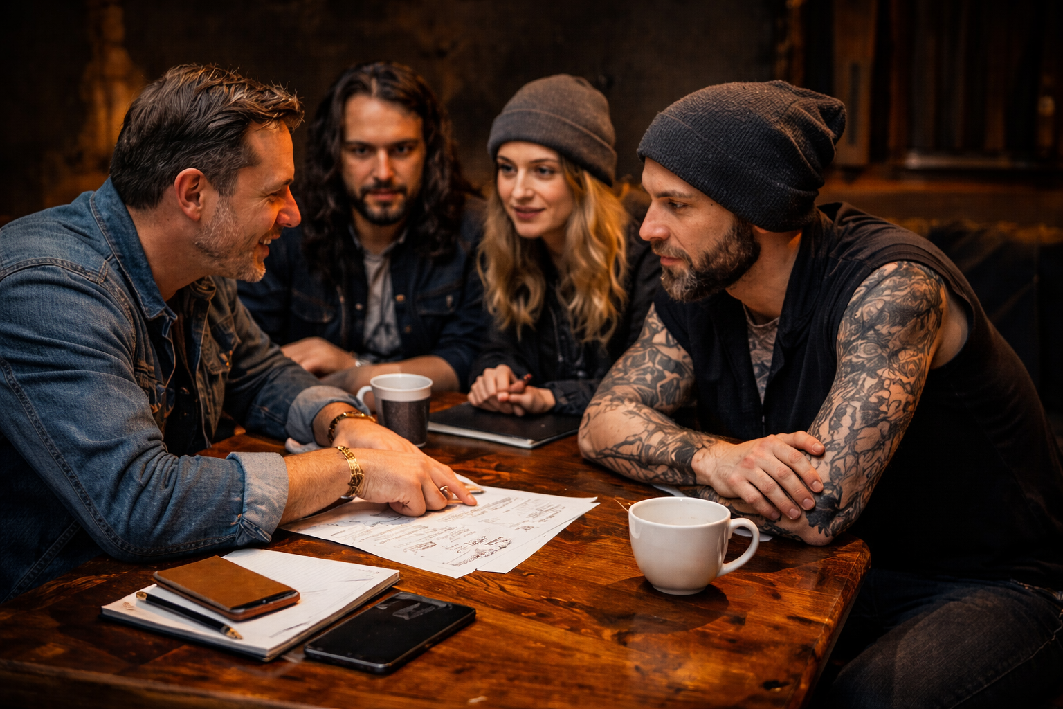Wir managen deine KI- oder menschliche Band oder dich als Einzelkünstler und führen dich zum Erfolg.